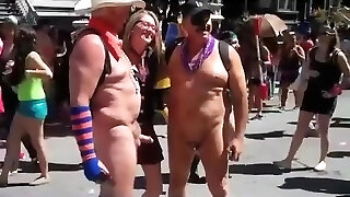 Two old exhibitionists take pictures with super-steamy ladies while being naked