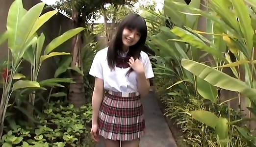 asiatico angelo in una scuola uniforme in un vero e proprio gonzo scena