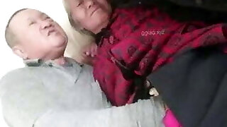 grassa nonna cinese in accappatoio rosso su skype webcam