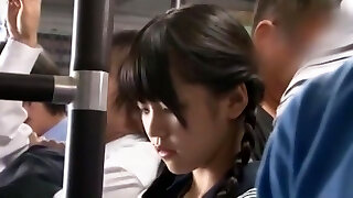 procace, asiatico dai capelli castani è sempre molestato in un pubblico buss, ma lei gode di un sacco