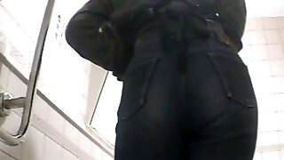 spy sala di riposo pissing rasato cooter'ebano calze di buone dimensioni culo di buone dimensioni tette urinare e spruzzare