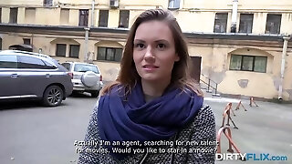 Horny pervert picks up Claudia Bavel by showing his hard and meaty dick in the van
