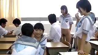 Japanese schoolgirl enjoy group sex