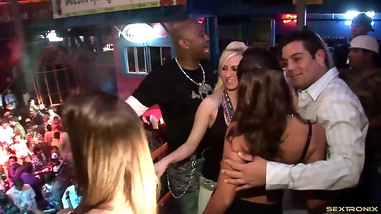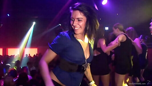 Insatiable soiree chicks get toasted and unwrap while at a club