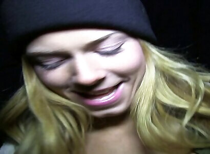 Bodacious platinum-blonde babe with big all-natural baps frolicking with her snatch in public