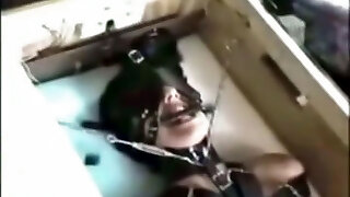 Pale restrain bondage whore Alice gets pussy pumped up and masturbated hard
