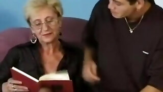 Attractive Granny with Glasses Ravages Her Toy Boy