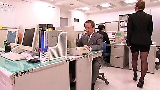 japanese female boss is licked pussy in office