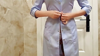 nurse in the hospital toilet masturbates and makes a flick on the phone for her subscribers
